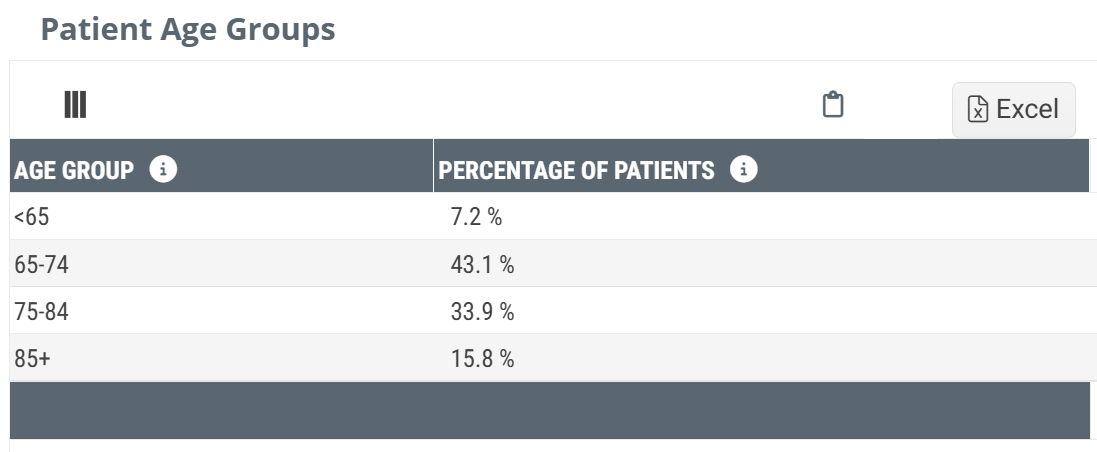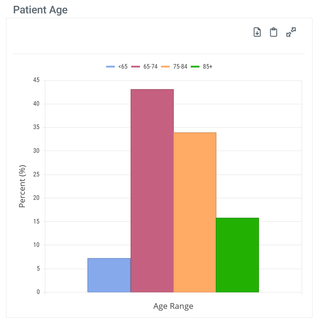 | When you hover over a sector in the Patient Age chart, the metrics for that bar are displayed. | ![]() |
