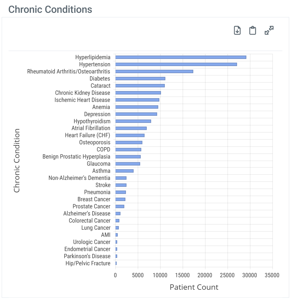 | When you hover over a bar in the Chronic Conditions chart, the metrics for that bar are displayed. | ![]() |