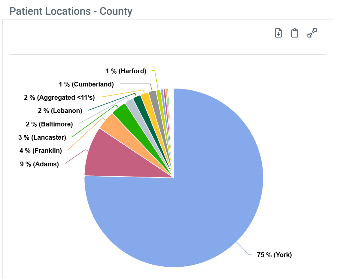 - Patient Locations - County - percentage of patient's county of residence.